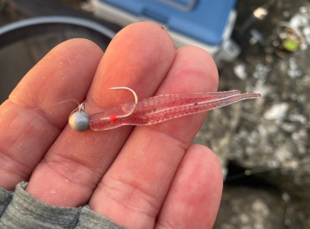 しばらく同パターンでアジをキャッチ後、あえてワームを変えて試してみましたが…なぜか反応が得られず…